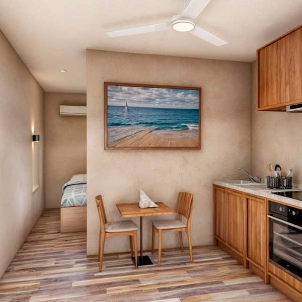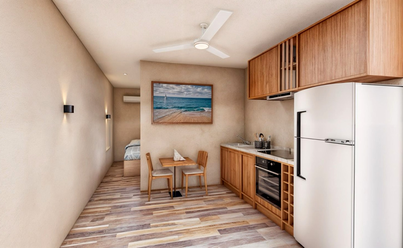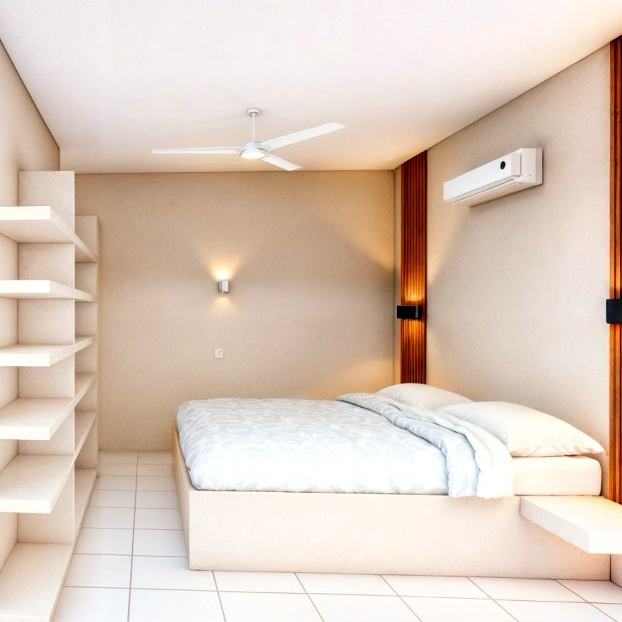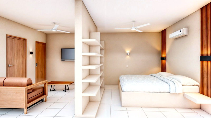 In addition, inside one of the apartments there is a cover with a railing to access the second bedroom.